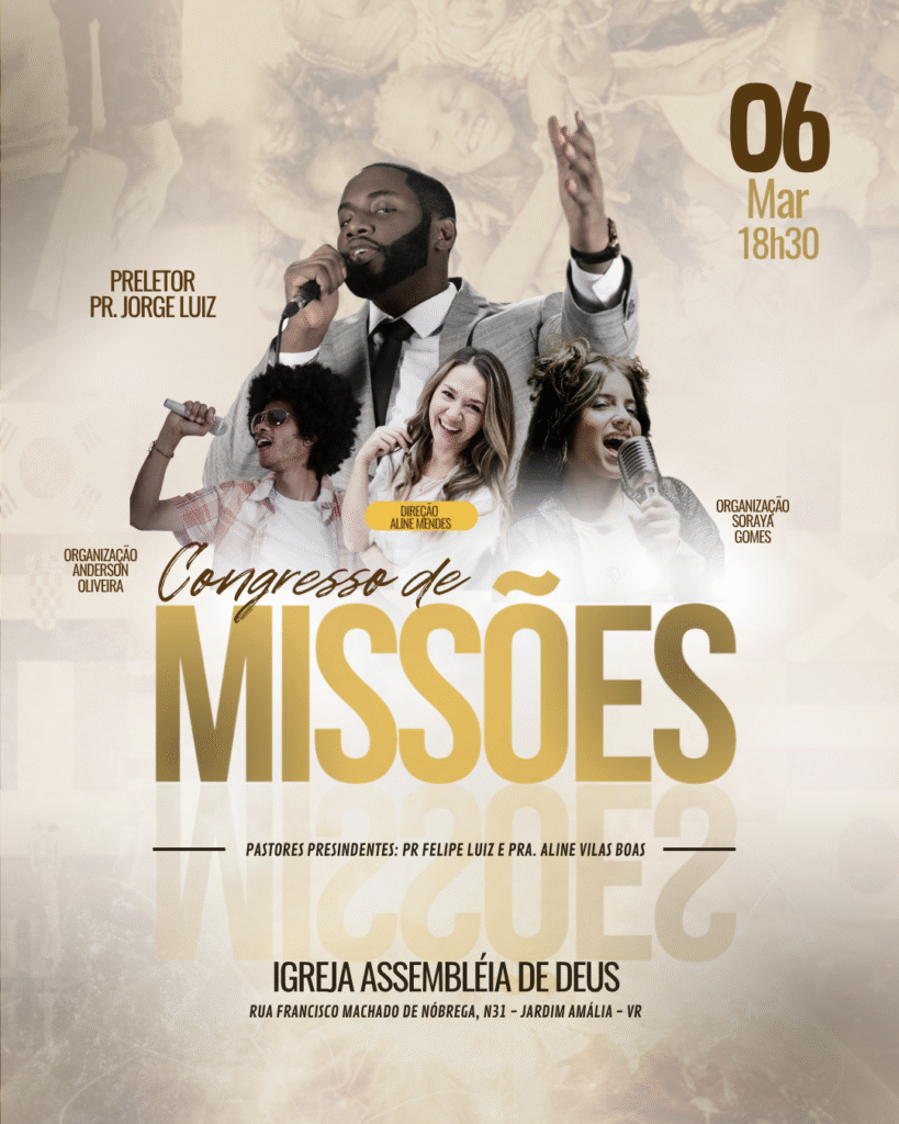 Atenção: Todos os modelos dos cartazes terão apenas os textos e as imagens das pessoas alterados. As cores de fundo e os elementos permanecerão conforme estão nos modelos.